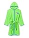 Este es un albornoz en un color verde muy bello y vivo con capucha. Es muy suave y confortable. Está fabricado en 100% poliéster suave y acolchado. Sirve para usar en casa después de bañarse o para llevar a la piscina o a la playa.