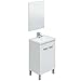 Permite la combinación con cualquier tipo de decoraciones en sanitarios. Consiste en un mueble de juego completo que incluye un lavamanos de cerámica y un espejo. En su interior posee un estante con dos compartimientos que permite organizar y almacenar productos de aseo personal o toallas de manera cómoda y discreta.